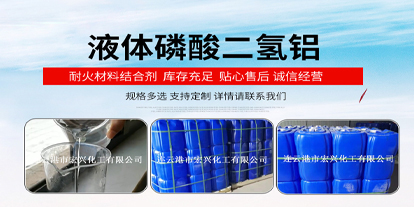 您好,歡迎來到連云港市宏興化工有限公司網站!我們為您提供磷酸二氫鋁液體、磷酸二氫鋁結合劑、耐高溫粘結劑等產品及服務。